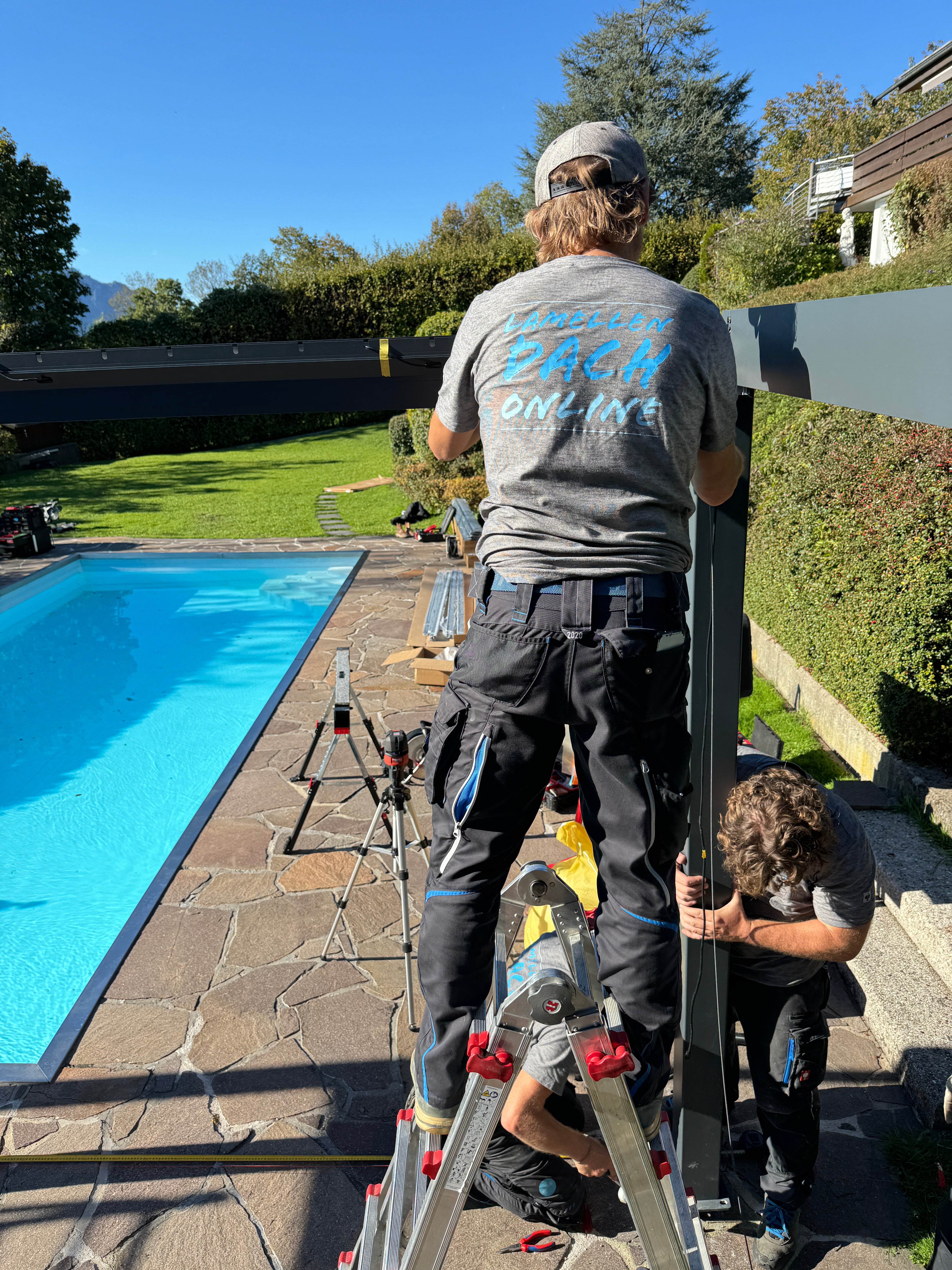 Mit den geschickten Händen von 2-3 Personen lässt sich das LAMELLENDACH DELUX innerhalb eines Tages aufbauen und in voller Pracht genießen.